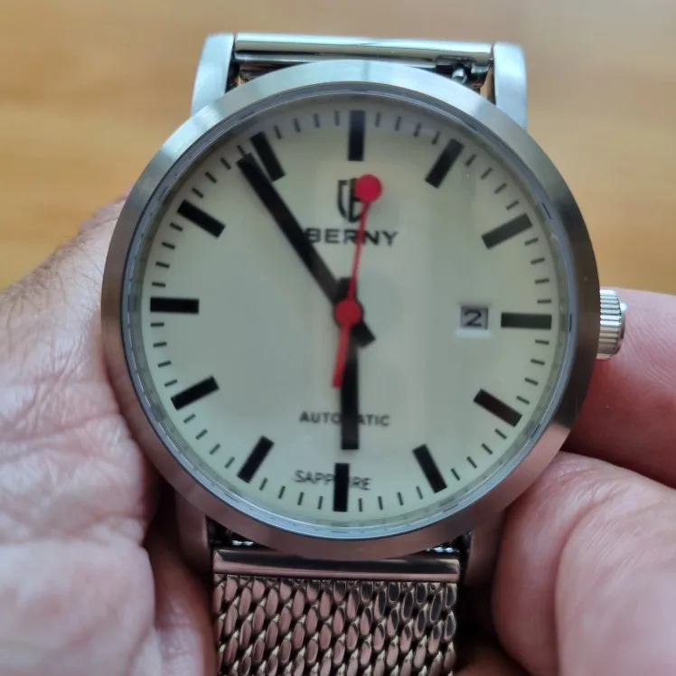 Dominique Lucas Il avait l'air super sur les photos, et c'est génial quand vous l'obtenez. Ce n'est ni trop grand ni trop petit. J'espère que le verre va durer. La couronne n'a pas de vis donc même avec l'autre bracelet, je ne recommanderais pas de prendre une douche avec elle. Je suis très satisfait mais s'il vous plaît ne l'achetez pas, je veux être le seul autour de le porter;)