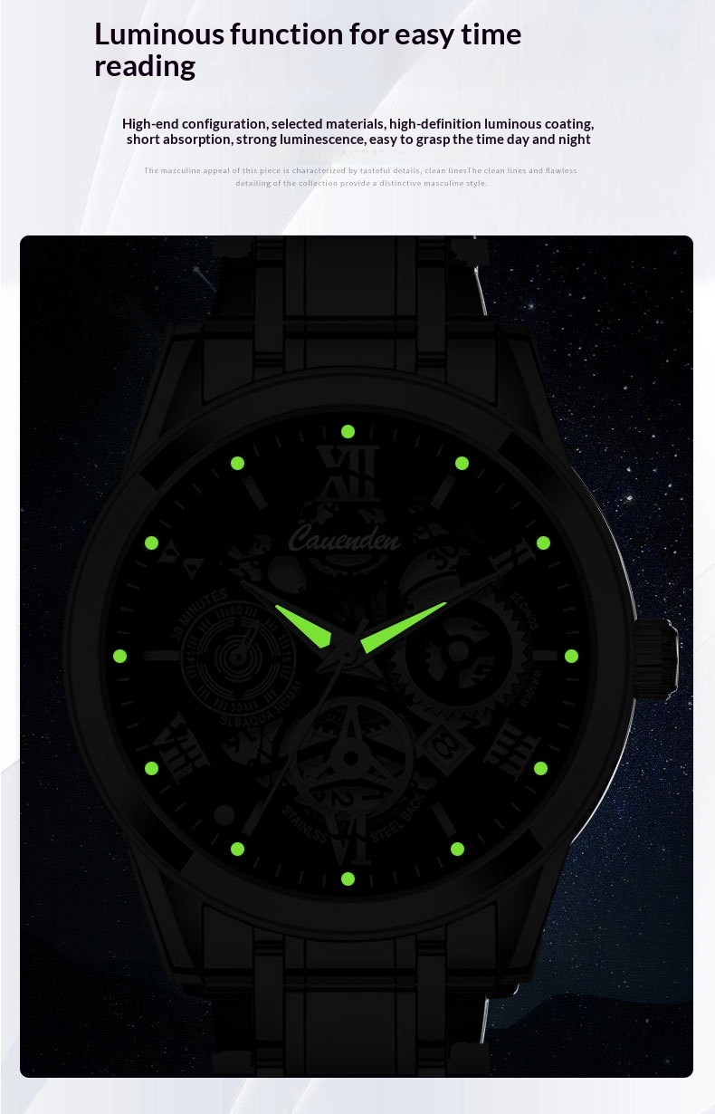 Waterproof Luminous Hollow Out Mens Watch